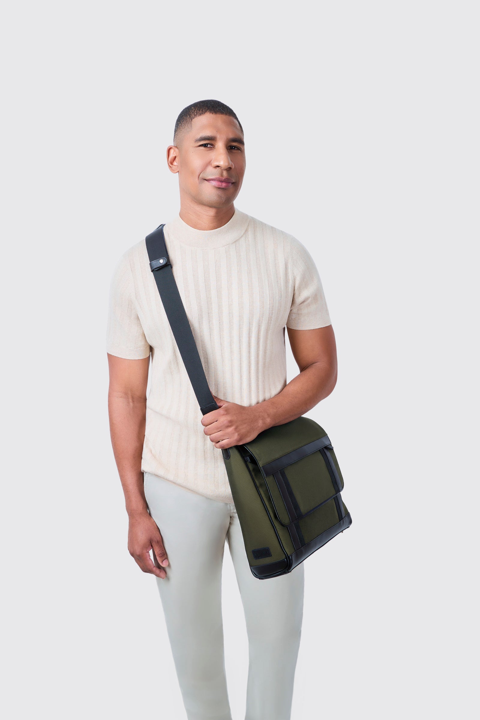 It features a separate section for a 14-inch laptop. Being waterproof and tear-resistant, you can safely carry your laptop and valuables. Shop this sustainable and unisex messenger bag now!
